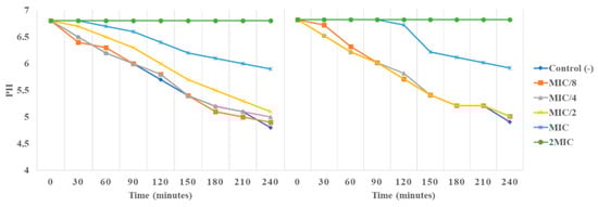 - Berlutti, F.; Frioni, A.; Natalizi, T.; Pantanella, F.; Valenti, P. Influence of sub-inhibitory antibiotics and flow condition on Staphylococcus aureus ATCC 6538 biofilm development and biofilm growth rate: BioTimer assay as a study model. J. Antibiot. 2014, 67, 763–769. [Google Scholar] [CrossRef] [PubMed]