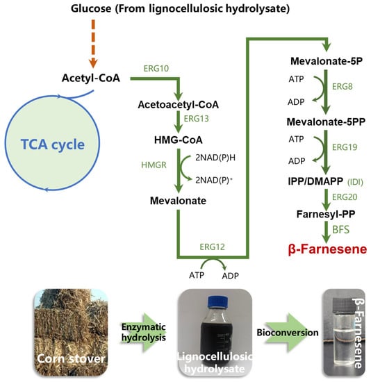 - You, S.; Chang, H.; Zhang, C.; Gao, L.; Qi, W.; Tao, Z.; Su, R.; He, Z. Recycling strategy and repression elimination for lignocellulosic-based farnesene production with an engineered Escherichia coli. J. Agric. Food Chem. 2019, 67, 9858–9867. [Google Scholar] [CrossRef] [PubMed]