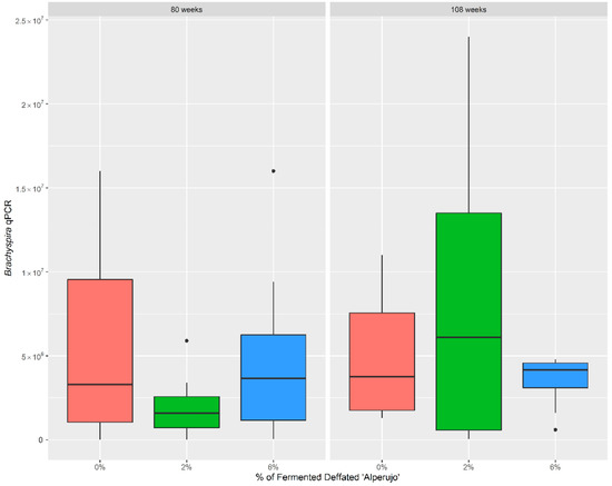 Chicago/Turabian StyleRebollada-Merino, Agustín, María Ugarte-Ruiz, Alberto Gómez-Buendía, Carmen Bárcena, Nerea García, Lucas Domínguez, and Antonio Rodríguez-Bertos. 2022. "Cecal Reduction of Brachyspira and Lesion Severity in Laying Hens Supplemented with Fermented Defatted ‘Alperujo’" Fermentation 8, no. 10: 550. https://doi.org/10.3390/fermentation8100550