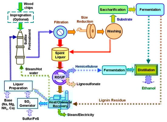 Schematic process flow diagram of the sulfite pretreatment [].