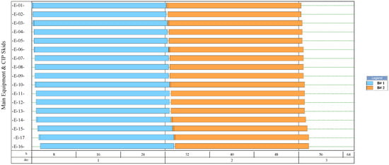 Figure 8), it is identified that all the equipment units are scheduled to start at the same time. This schedule enables the material flow entering the equipment to be processed in a semi-continuous mode to increase the amount of waste processed per unit of time.