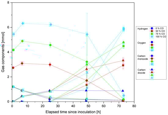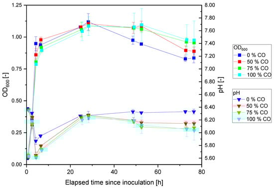 3.1. Cultivation of P. thermoglucosidasius KP1013 under Varying CO Concentrations at Atmospheric Pressure in the Presence of Oxygen