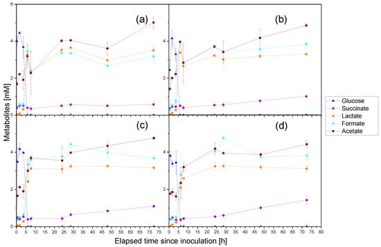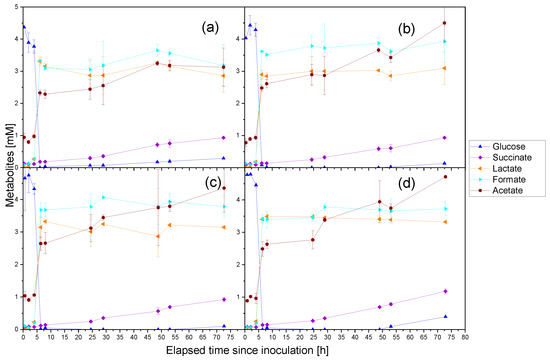 - Enjalbert, B.; Millard, P.; Dinclaux, M.; Portais, J.C.; Létisse, F. Acetate fluxes in Escherichia coli are determined by the thermodynamic control of the Pta-AckA pathway. Sci. Rep. 2017, 7, 42135. [Google Scholar] [CrossRef] [PubMed]