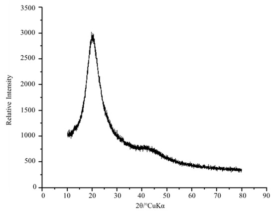 XRD profile of the crude BE produced by strain S. shehatae 16-BR6-2AI. Examined with 2θ in the range 10–90°. The diffractogram represents the sharp diffracted peaks of the crystalline portion and the broad peaks of the amorphous part.