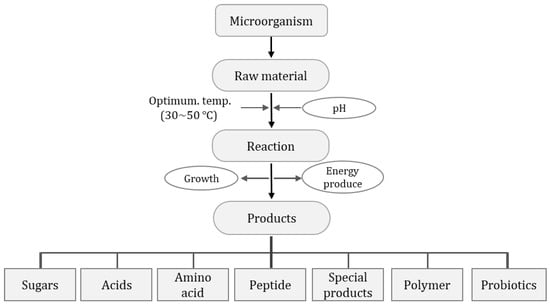 Fermentation was first scientifically defined 500 years ago [,], yet humans have used fermented foods for ages. In the early days, humans used natural products and relied on natural phenomena for fermentation. For instance, fermentation might have naturally occurred when microorganisms in the air acted on fallen starchy grains or fruits []. There are over 5000 fermented foods reported worldwide, with an estimated daily consumption of 50–400 g of fermented foods []. Fermented foods are produced using biochemical functions where microbes decompose or synthesize organic substances that positively affect the human body by producing new substances, such as organic acids, vitamins, fatty acids, and fragrances. In addition, the microorganisms involved in fermentation enter the human body and act as a probiotic, enhancing the value of fermented food products []. Hence, fermentation applicability will be broadened and extensively included in biotechnology and sectors associated with microbial culture in the near future []. The history of fermentation is the same as the history of microorganisms involved in fermentation. Between 3.3 and 3.5 billion years ago, microorganisms first appeared as life forms according to different proper survival conditions and began to use natural objects around them to maintain their lives []. Starting with these first microorganisms, a process in which numerous life forms appeared and disappeared was created.