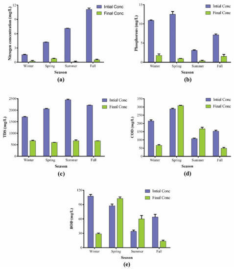 - Liu, J.; Pemberton, B.; Lewis, J.; Scales, P.J.; Martin, G.J. Wastewater treatment using filamentous algae—A review. Bioresour. Technol. 2020, 298, 122556. [Google Scholar] [CrossRef]