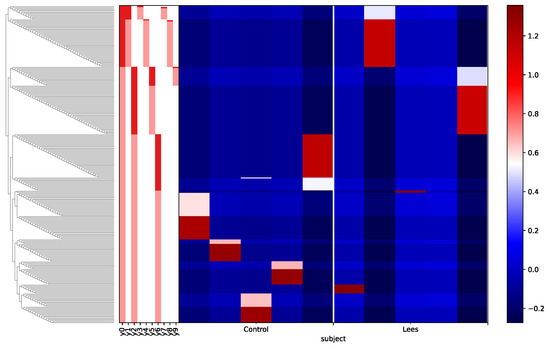 Finally, a differential abundance analysis with gneiss was performed (Figure 5). It can be observed that the denominator of y0 has few OTUs compared to the numerator of y0y0. Although balances were not able to infer absolute changes of microbes, it could limit the number of possible scenarios: the taxa in the numerator, on average, increased between the control and lees groups, the taxa in the denominator decreased between the lees and control groups, or a combination of both cases. The subsequent balance analysis showed a greater number of unique taxa in the control group (data not shown). Nevertheless, further investigations are needed in other to elucidate the presented preliminary results.