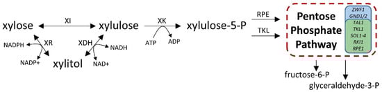 - Rodriguez-Peña, J.M.; Cid, V.J.; Arroyo, J.; Nombela, C. The YGR194c (XKS1) gene encodes the xylulokinase from the budding yeast Saccharomyces cerevisiae. FEMS Microbiol. Lett. 1998, 162, 155–160. [Google Scholar] [CrossRef]
