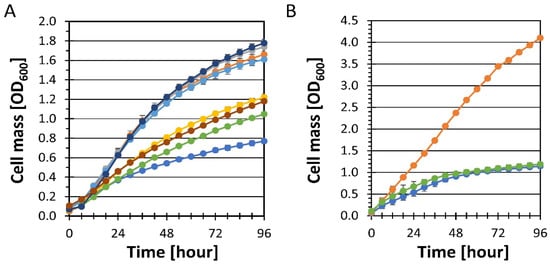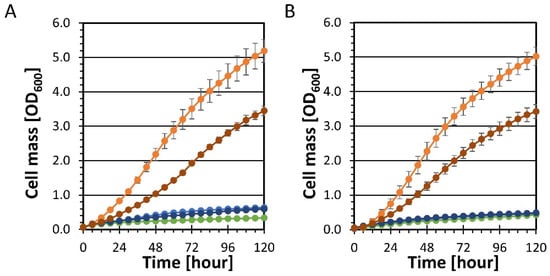 Cells were grown in xylose medium using the Bioscreen C™ automated microbiology growth curve analysis system (Growth Curves USA; Piscataway, NJ, USA), which features 100 micro-well culture plates. Growth assays were performed essentially as described in []. Each strain was analyzed in at least quadruplicate using separate biological replicates. Cell mass (OD600) was determined by converting the wideband OD (WB) values from the Bioscreen C™ as described in [].