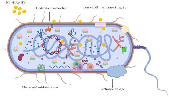 Illustration of the possible mechanism by which Ni2+-doped HApNPs exert their antibacterial effects.