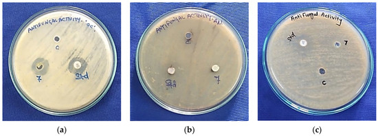 Antifungal activity of Ni2+-doped HApNPs treated against (a) O. caricae, (b) A. niger and (c) A. flavus.
