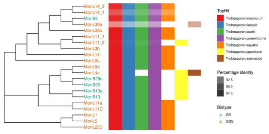 | Mor-L14 | GGS | Trichosporon insectorum | ON810623.1 |