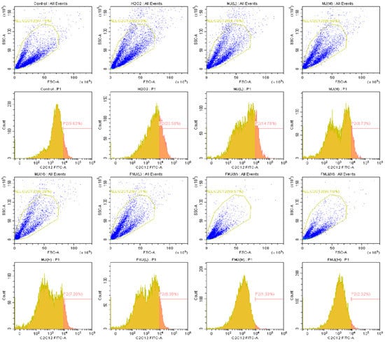 The inhibitory effect of BMJ and FBMJ on H2O2-induced intracellular ROS production in C2C12 cells. The intracellular ROS production was determined using the DCFH-DA method with flow cytometry.