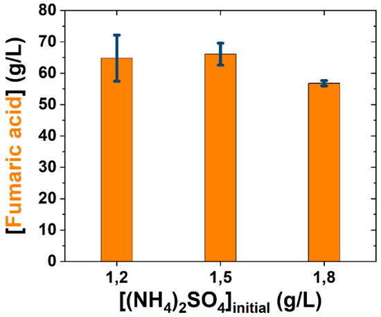 As it has been demonstrated that limited nitrogen conditions increase fumaric acid production on different substances of fungi and yeasts [5,37], different concentrations of the inorganic nitrogen source ((NH4)2SO4) were tested to find an improved yield of fumaric acid production.