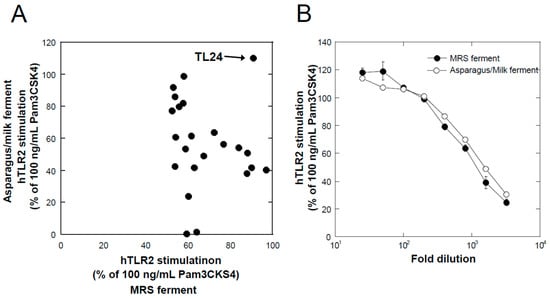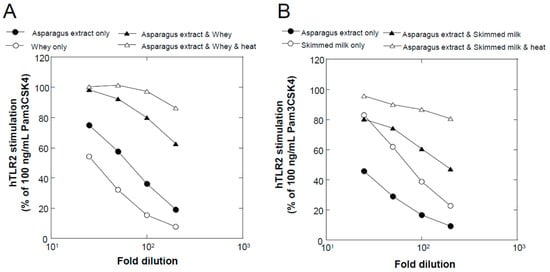 23]. Therefore, the substances stimulating TLR2 but not TLR4 might be appropriate as food ingredients targeting the gut. The asparagus/milk ferments described in this study might have such a beneficial property.