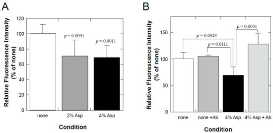 Lactic acid bacteria were cultured in De Man, Rogosa, and Sharpe (MRS) medium (Difco) at their preferred temperature (30 °C or 37 °C, depending on the strains) under static conditions for 24 h and used as the seed culture (MRS seed). For fermentation under static conditions, an MRS seed equivalent to 2% of the fermentation volume was added to the plant extracts with or without milk components after sterilization (110 °C × 20 min), and fermentation was performed at the bacteria preferred temperature (30 °C or 37 °C) for 24 h. For fermentation by TL24 using a 5 L jar fermenter (Bioneer-Neo, Marubishi Bioengineering, Tokyo, Japan), an MRS seed equivalent to 2% of the fermentation volume was added to a sterilized asparagus extract containing 3% skimmed milk, and the mixture was incubated at 37 °C for 24 h in static conditions to obtain an asparagus seed culture. After the vessel of the fermenter was filled with 2.5 L of asparagus extract and 3% skimmed milk, sterilized at 110 °C for 20 min, and cooled to 37 °C, 50 mL of the asparagus seed culture was inoculated. Fermentation was performed under mild stirring conditions (80 rpm) at 37 °C for 24 h.