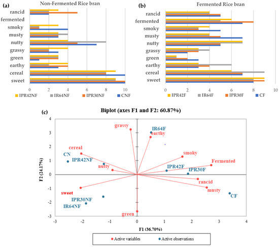 3.3. Aroma Description of Fermented and Nonfermented Rice Bran