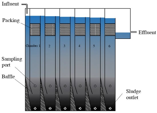 - Nguyen, T.H.; Watari, T.; Hatamoto, M.; Sutani, D.; Setiadi, T.; Yamaguchi, T. Evaluation of a combined anaerobic baffled reactor-downflow hanging sponge biosystem for treatment of synthetic dyeing wastewater. Environ. Technol. Innov. 2020, 19, 100913. [Google Scholar] [CrossRef]