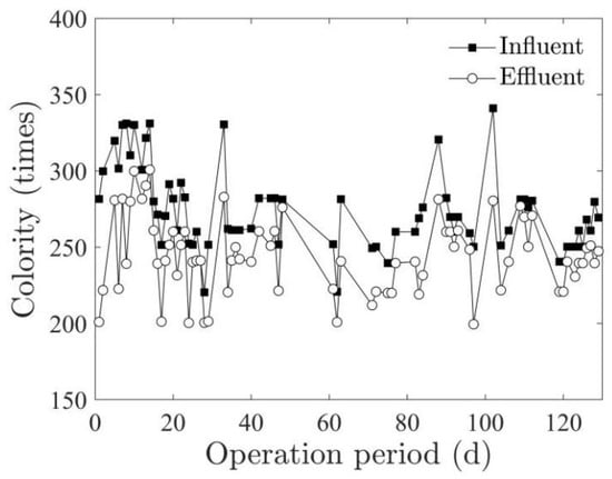3.1.3. Variation of Colority of the Wastewater