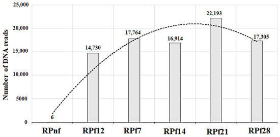 The amounts of Lactobacillus spp. as DNA reads obtained after metagenomic sequencing of 16S rRNA in RP samples are presented in Figure 6 and Figure 7.
