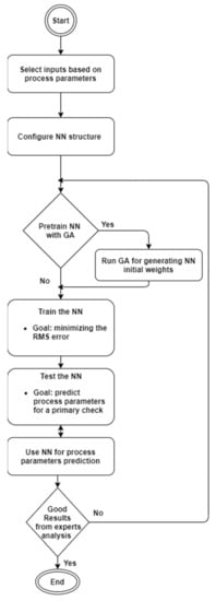 16], from our experience, we can say that there is no single solution (in terms of NN configuration) to suit all problems. For this reason, we believe that cross-fertilizing ideas belonging to evolutionary computing (such as automatic design space exploration, based on genetic algorithms) with artificial intelligence (neural networks) can lead to better results. Thus, we tried to improve and enrich the current solution by replacing the manual design -space exploration for the architecture of the NN with a basic, automatic design space exploration based on a genetic algorithm. The idea started from the fact that several parameters of the NN are chosen randomly at the beginning of the process, such as the weights, the number of hidden layers, the number of neurons on a hidden layer, and the learning rate. More precisely, the aim is to replace the initial random weights of the NN with some that are generated by the genetic algorithm, run for between 30 and 50 generations, in order to increase prediction accuracy. To achieve this goal, an NN has been developed in Visual Studio C# and trained using the experimental data for an alcoholic fermentation process from white winemaking; then, based on this NN, we have been predicted the desired variables of the process.