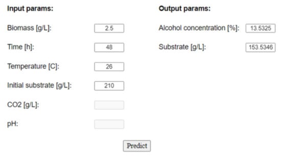 When pressing the “Predict” button in the output section, the numerical values for the output parameters can be read and further interpreted by the wine technology expert. Thus, the NN is able to determine the fermentation stage (providing real-time information regarding the fermentation process without reading the sensors) or predict wine quality based on the process variables. This can directly affect the productivity of the winery by saving time and money.