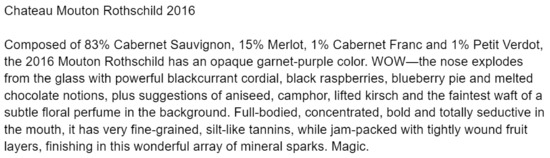 Wine review of Chateau Rothschile 2016 from Robert Parker.