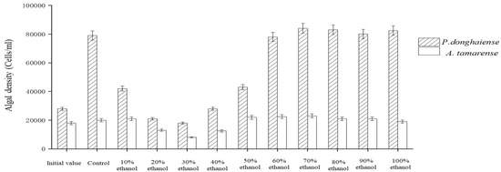 Prorocentrumdonghaiense and Alexandrium tamarense were obtained from Shanghai Guangyu Biotechnology Co., Ltd., Shanghai, China. We maintained the axenic algal culture at 20 ± 2 °C in a sterile F/2 medium, which was prepared with natural seawater filtered to 0.45 µm and maintained under a 12:12 h light/dark cycle. We also counted cell numbers under a microscope. The algal culture was then transferred once a week to a fresh, sterilized medium, ensuring that experiments were always conducted with new cultures during the exponential growth phase.