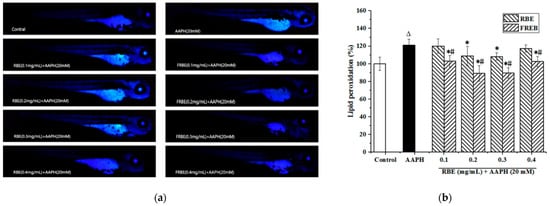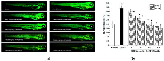 3.4. Antioxidant Activity in Zebrafish