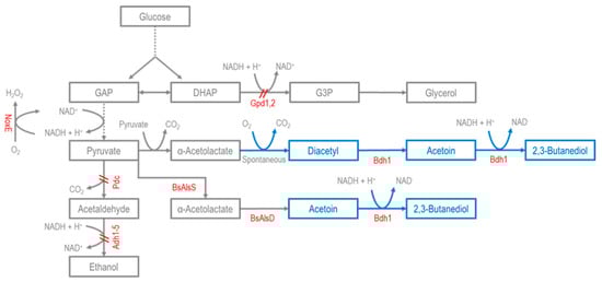 - Yang, T.; Rao, Z.; Zhang, X.; Xu, M.; Xu, Z.; Yang, S.T. Enhanced 2,3-butanediol production from biodiesel-derived glycerol by engineering of cofactor regeneration and manipulating carbon flux in Bacillus amyloliquefaciens. Microb. Cell Factories 2015, 14, 122. [Google Scholar] [CrossRef]