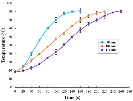 Temperature–time curve of RF heating of PME solution with three different electrode gaps.