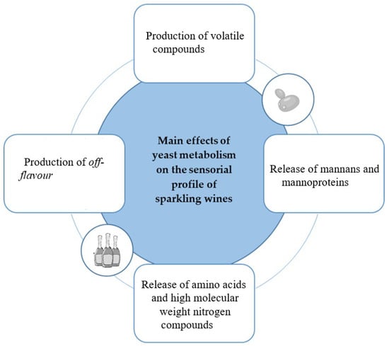 Impact of yeast metabolisms on the sensory properties of sparkling wines [1,25,34,40,41].