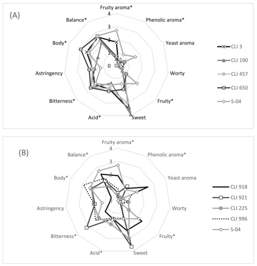 - Cubillos, F.A.; Gibson, B.; Grijalva-Vallejos, N.; Krogerus, K.; Nikulin, J. Bioprospecting for Brewers: Exploiting Natural Diversity for Naturally Diverse Beers. Yeast 2019, 36, 383–398. [Google Scholar] [CrossRef]