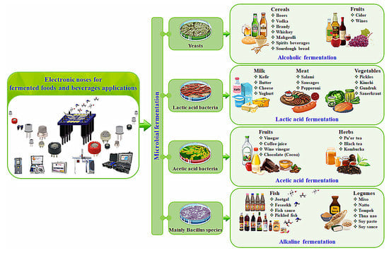 Chicago/Turabian StyleSeesaard, Thara, and Chatchawal Wongchoosuk. 2022. "Recent Progress in Electronic Noses for Fermented Foods and Beverages Applications" Fermentation 8, no. 7: 302. https://doi.org/10.3390/fermentation8070302