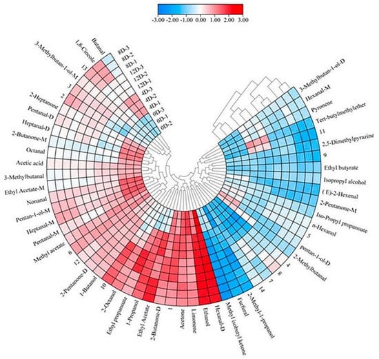 - Huang, M.; Li, Y.; Zhan, P.; Liu, P.; Tian, H.; Fan, J. Correlation of volatile compounds and sensory attributes of Chinese traditional sweet fermented flour pastes using hierarchical cluster analysis and partial least squares-discriminant analysis. J. Chem. 2017, 2017, 3213492. [Google Scholar] [CrossRef]