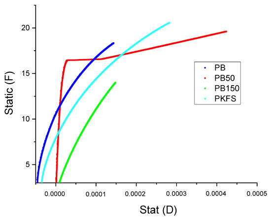 In addition, dynamic mechanical measurements were performed on the final products after cooking, in order to verify their softness retention as a function of the time. Specifically, the evaluation of the applied force as a function of the recorded deformation is depicted in Figure 4.