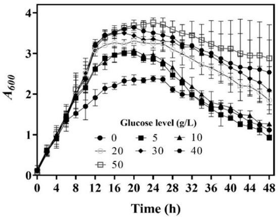 The fermentations started by inoculating the seed culture at a size of 10% (v/v) into fermentation media supplemented with different levels of glucose, and then they were statically maintained at 30 °C until the end. Samples were aseptically withdrawn every 4 h. All the experiments were conducted in triplicate.