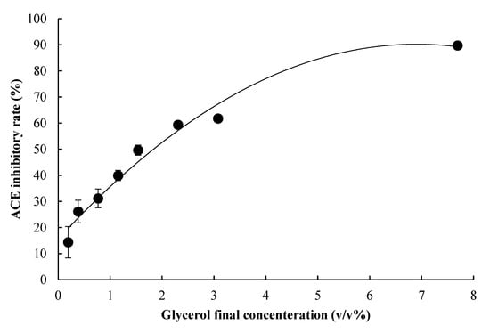 ACE inhibitory rate at each concentration of glycerol; The data represented the mean values ± standard error (n = 3).
