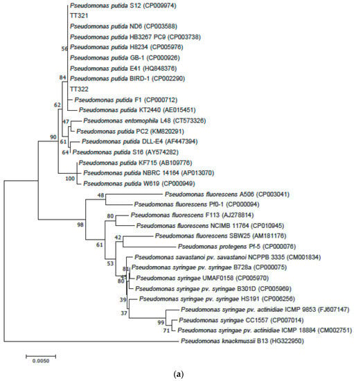 - Moore, E.R.B.; Tindall, B.J.; Martins Dos Santos, V.A.P.; Pieper, D.H.; Ramos, J.-L.; Palleroni, N.J. Nonmedical: Pseudomonas. In The Prokaryotes: Volume 6: Proteobacteria: Gamma Subclass; Dworkin, M., Falkow, S., Rosenberg, E., Schleifer, K.-H., Stackebrandt, E., Eds.; Springer: New York, NY, USA, 2006; pp. 646–703. ISBN 978-0-387-30746-6. [Google Scholar]