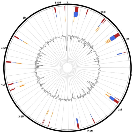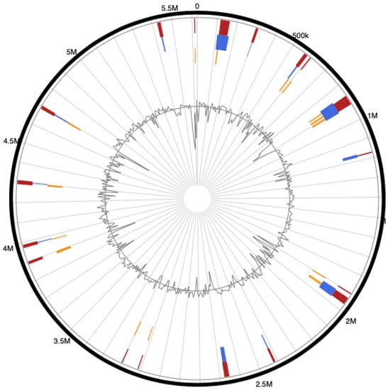 - Darling, A.C.E.; Mau, B.; Blattner, F.R.; Perna, N.T. Mauve: Multiple Alignment of Conserved Genomic Sequence with Rearrangements. Genome Res. 2004, 14, 1394–1403. [Google Scholar] [CrossRef] [Green Version]