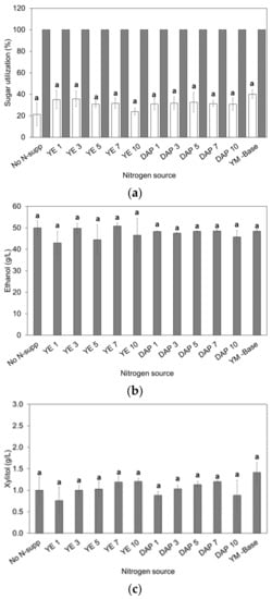 3.2. Evaluating the Supplementation of Nitrogen Sources for Xylitol Production Using Vinasse from Ethanol Fermentation