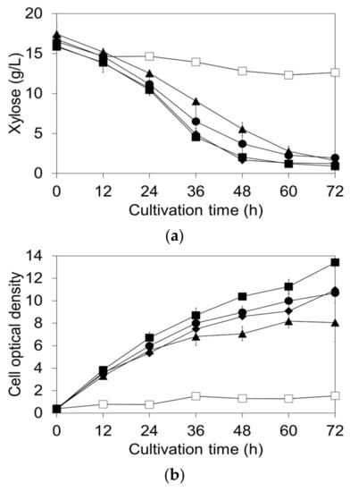 - Toivari, M.H.; Salusjärvi, L.; Ruohonen, L.; Penttilä, M. Endogenous Xylose Pathway in Saccharomyces cerevisiae. Appl. Environ. Microbiol. 2004, 70, 3681–3686. [Google Scholar] [CrossRef] [Green Version]