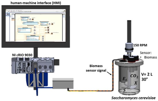 In recent years, fermentation processes have become an industry of great economic importance, this has motivated scientists and engineers to seek new strategies to improve performance and reduce operating costs. A key question when optimizing this type of bioprocess is how to monitor all its critical variables online since this is a necessary task to bring the process to the desired state of operation []. However, the available instrumentation and sensors do not always cover all the necessary measurements or at least the necessary ones. The low availability of sensors in the market and their high costs, the presence of noise measurement, the operational politics of the bioreactors, and their intrinsic nonlinear behavior, are strong obstacles to bioreactor instrumentation [,].