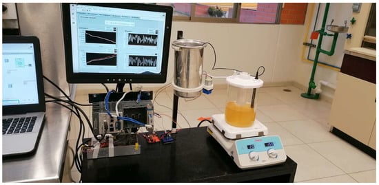 The results of the real-time implementation of the state observers are shown in Table 4), however, when programming the observers the biomass sensor signal was used. In this work, a TS-300B turbidity sensor was used to measure biomass density. The sensor is composed of an infrared light emitting diode on one side and a phototransistor to detect the intensity of the light passing through the open channel to the opposite side []. The light intensity on the detection side decreases as the turbidity increases. The output signal (Vout) is read directly by the NI cRIO 9030.