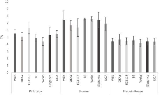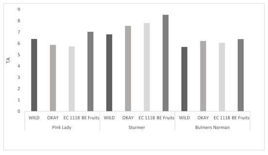 - Bandić, L.; Žulj, M.M.; Fruk, G.; Babojelić, M.S.; Jemrić, T.; Jeromel, A. The profile of organic acids and polyphenols in apple wines fermented with different yeast strains. J. Food Sci. Technol. 2019, 56, 599–606. [Google Scholar] [CrossRef]
