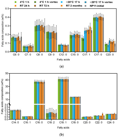 3.4. Stability of FAMEs under Different Preservation Conditions