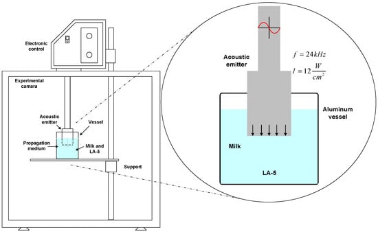 - Potoroko, I.; Kalinina, I.; Botvinnikova, V.; Krasulya, O.; Fatkullin, R.; Bagale, U.; Sonawane, S.H. Ultrasound Effects Based on Simulation of Milk Processing Properties. Ultrason. Sonochem. 2018, 48, 463–472. [Google Scholar] [CrossRef]