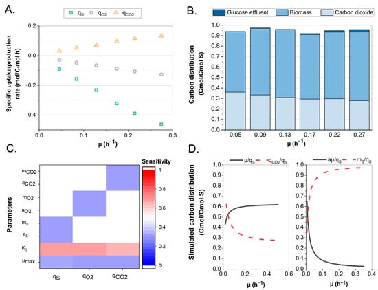 | Metabolic State | Threshold | Growth Rate (h−1) | Glucose Uptake Rate (kgkg−1h−1) | Oxygen Uptake Rate (kgkg−1h−1) |