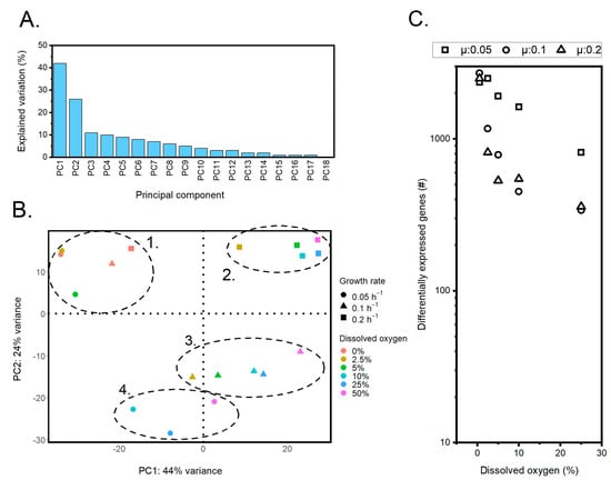 3.3. Yarrowia lipolytica’s Transcriptional Response to Growth Rate and Dissolved Oxygen Variations
