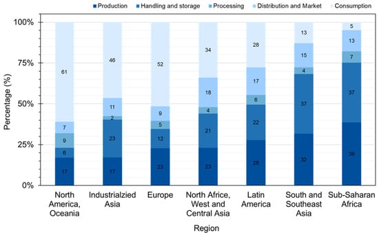 A successful bioprocessing operation requires a continuous economical supply of the substrate to ensure that the operations can be run smoothly and hence warrants an understanding of the substrate supply chain, substrate characteristics, substrate variations due to different vendors, seasons, transportation time, storage etc. With FLW being produced at different levels of the food value chain, an understanding for the FLW amount generated at each step helps to estimate how the continuous economical substrate requirement can be met. Figure 2 shows the percentage contribution of different categories of FLW in different regions.